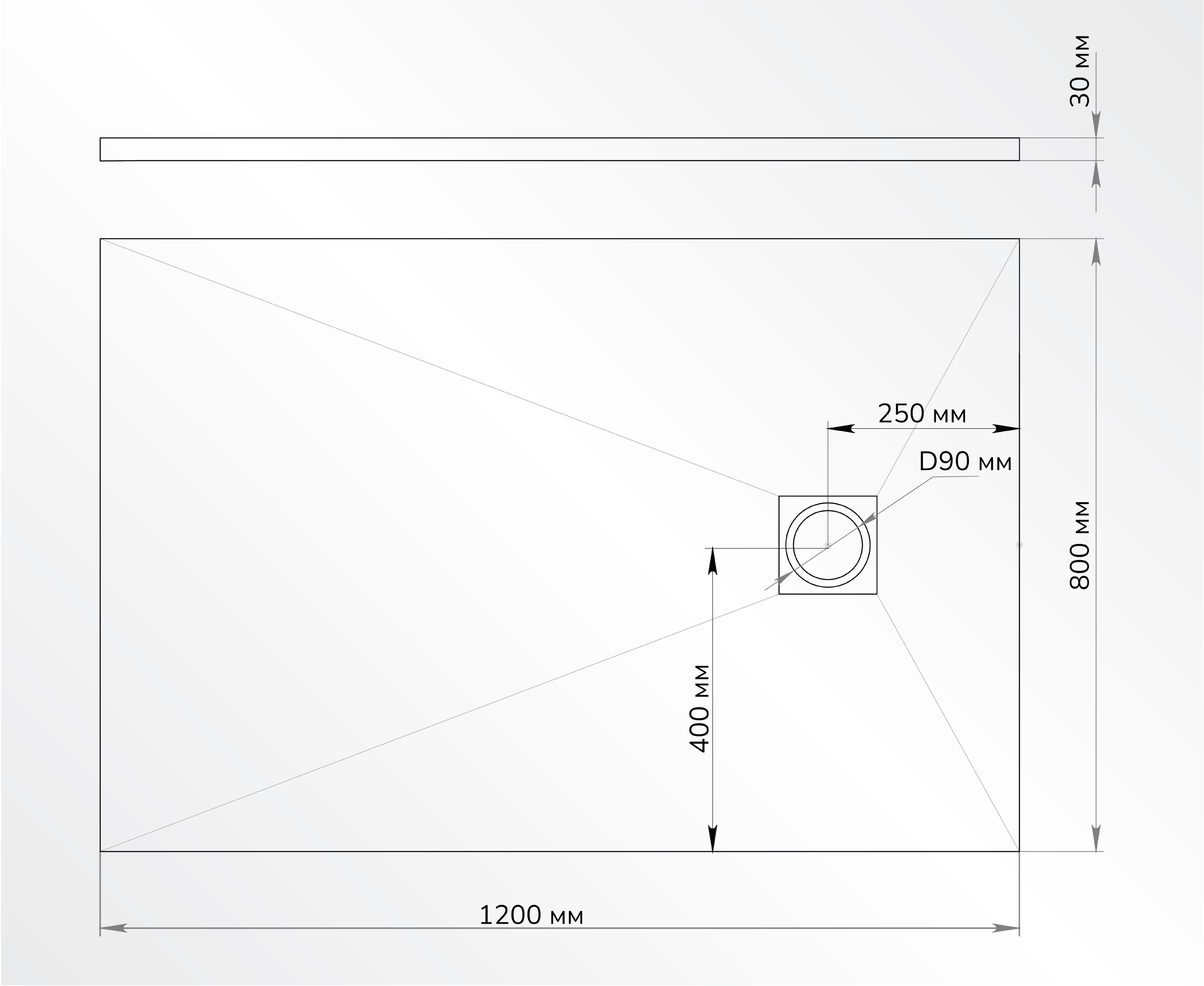 Конструктивные особенности поддона позволяют полностью избавиться от воды в течение 20-30 секунд. Поэтому даже при наличии крупной лейки или тропического душа, вероятность попадания воды за пределы поддона сведена к нулю.